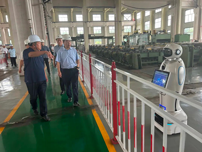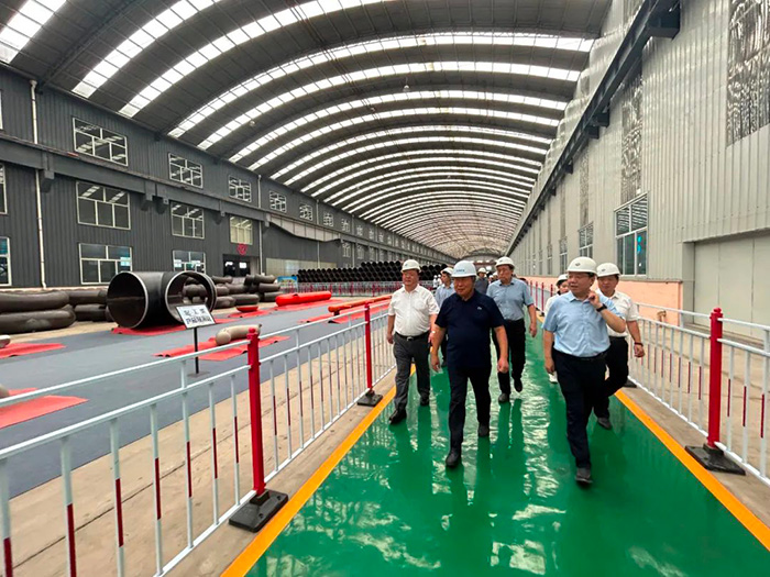 王素文廳長(zhǎng)一行參觀了滄海核裝直縫埋弧焊管生產(chǎn)線,詳細(xì)了解了滄海核裝的發(fā)展歷程、產(chǎn)能規(guī)模和生產(chǎn)經(jīng)營(yíng)情況,實(shí)地觀摩了5G智能工廠數(shù)字化車(chē)間的全流程調(diào)度運(yùn)行,對(duì)滄海核裝智能化的生產(chǎn)現(xiàn)場(chǎng)和精細(xì)化的管理模式給予了高度評(píng)價(jià)。